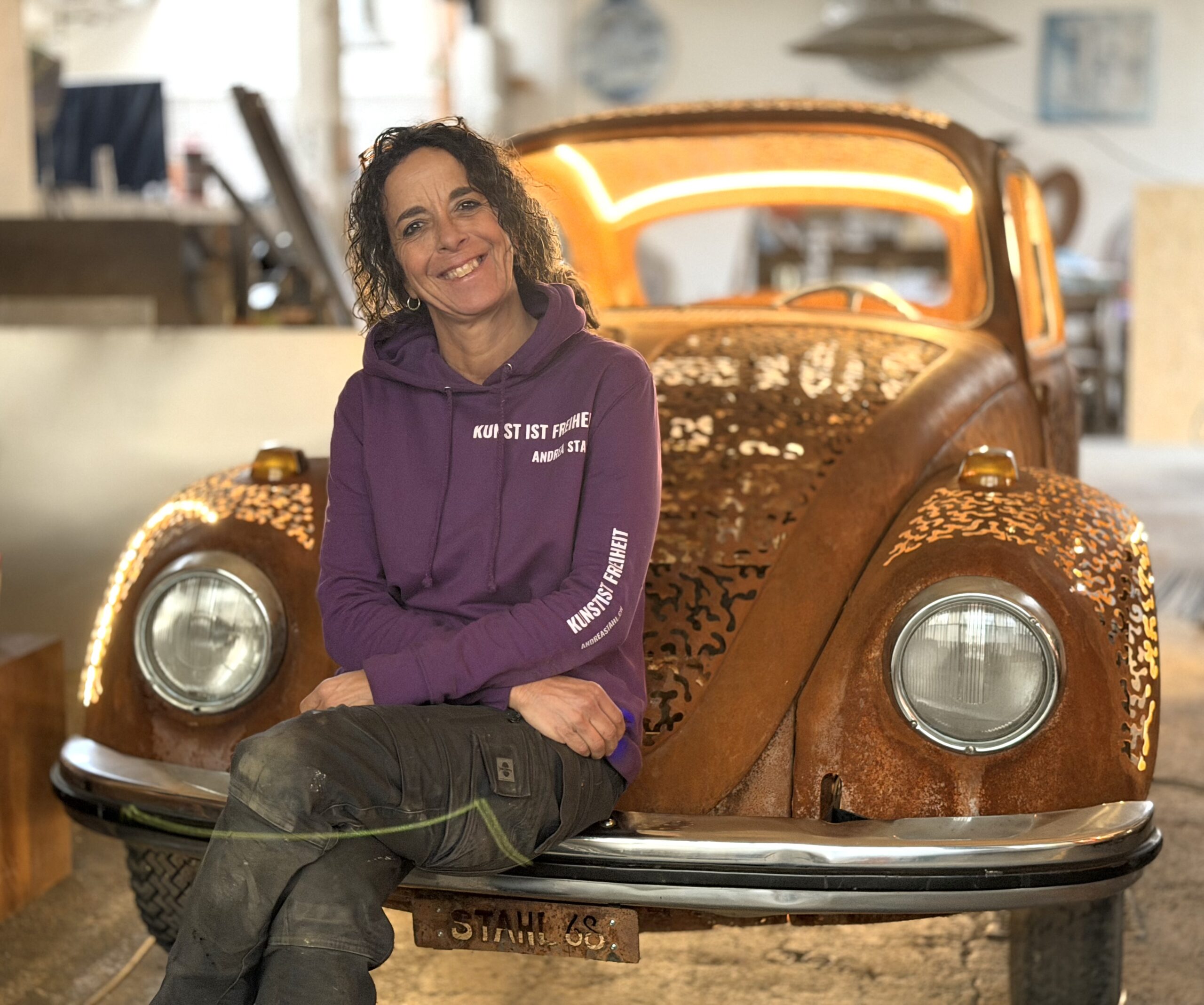 Der Stahl-Käfer ist mehr als ein Auto. Jedes Ornament wurde von Hand geschnitten, Hunderte Stunden Arbeit stecken darin. Ich wollte ein Objekt schaffen, das aus gewohnten Räumen ausbricht und Menschen berührt, inspiriert und zusammenbringt – als Ausstellungsstück, Bühne oder Erlebnisort.